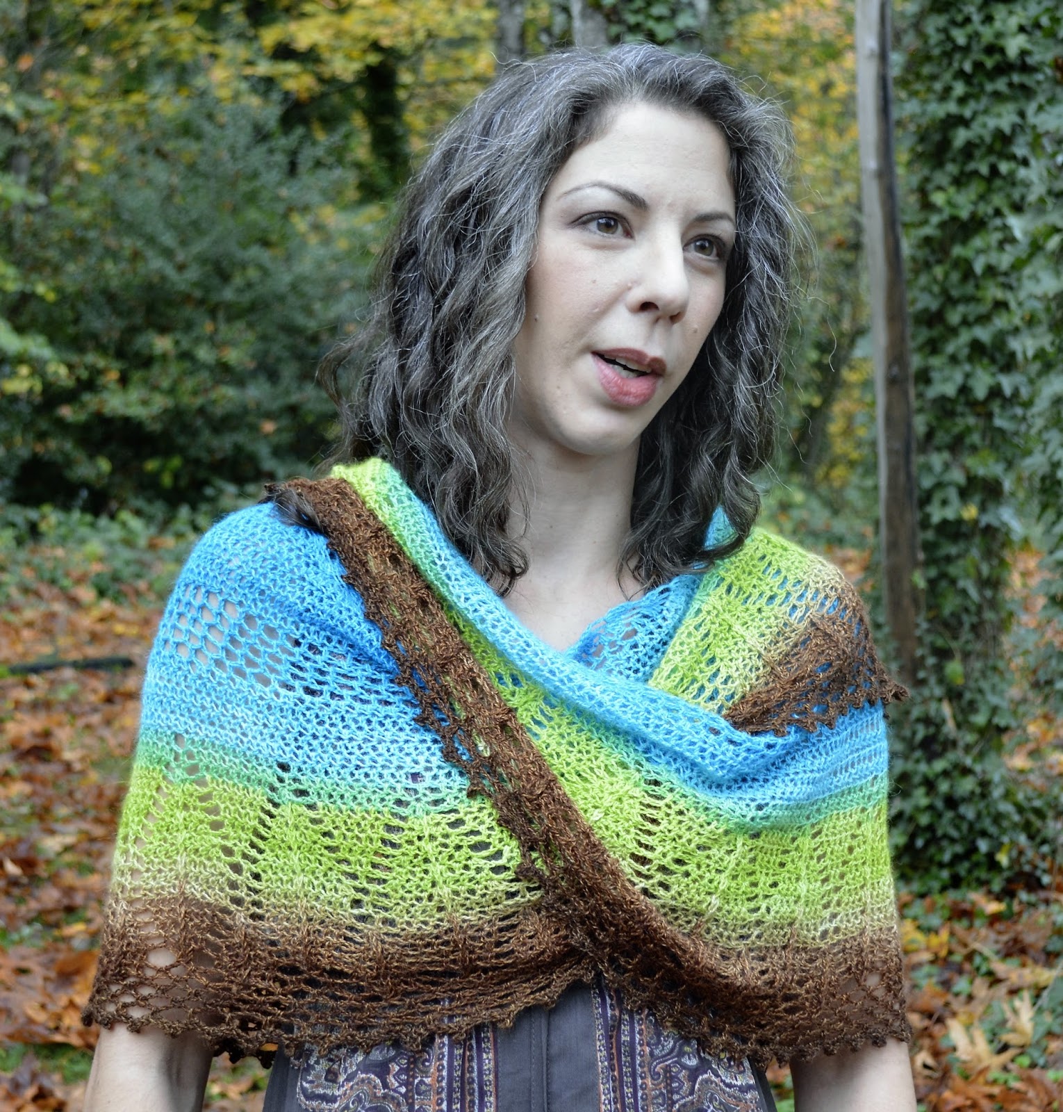 Just a few ways Decadent Bliss (or any long crescent shawl) can be worn: